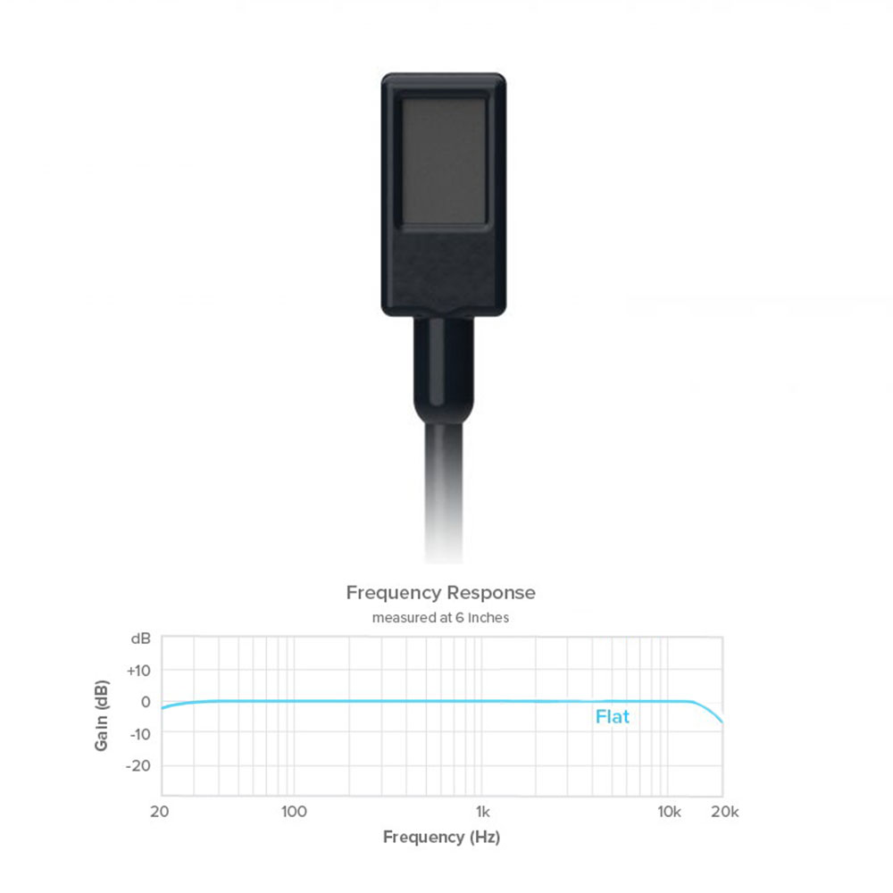 • Opções de resposta de frequência: com filtro para uso normal de lavalier, com pico para captação atrás da roupa ou plana para microfonação de instrumentos.