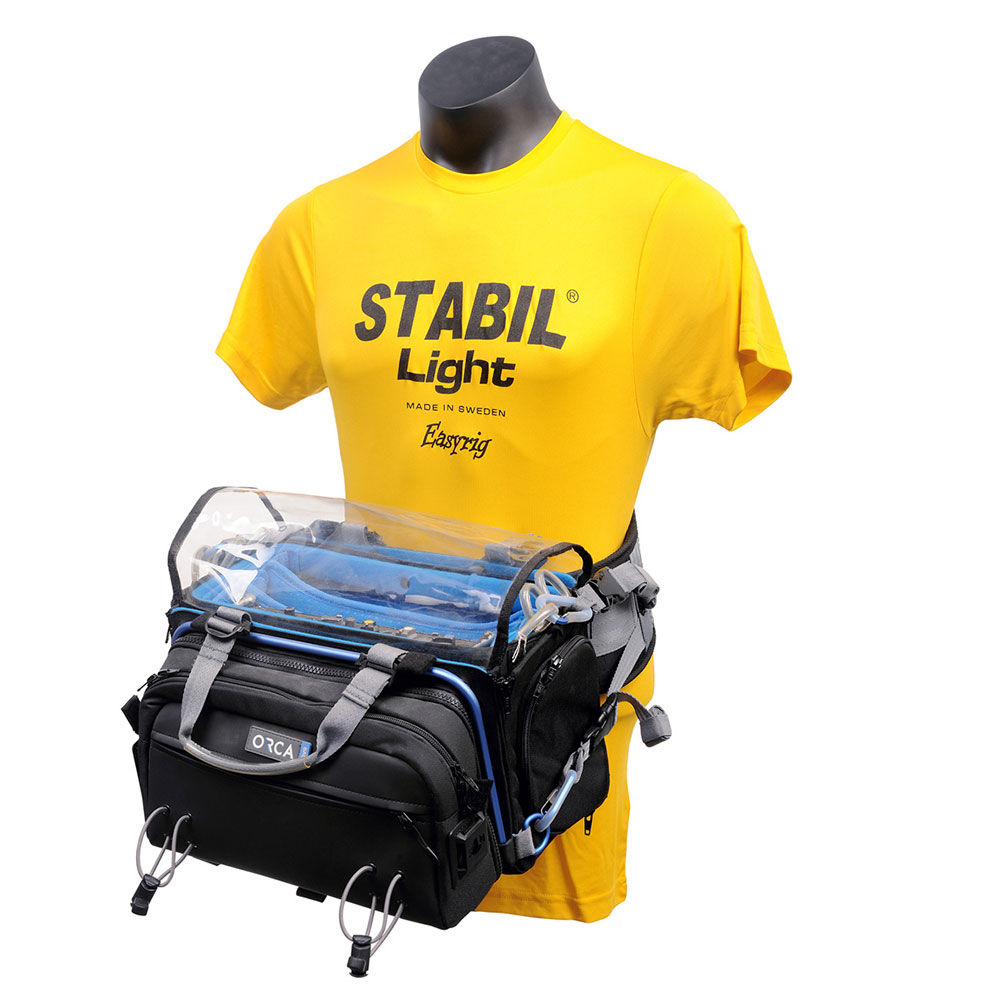O Orca OR-370 é um cinto de cintura avançado e leve, concebido para transportar a sua mala de áudio pequena ou média na anca, sem qualquer pressão nos ombros. Conectado à mala de áudio através de quatro mosquetões para uma ligação e libertação rápidas, é ideal para trabalhar em filmagens exteriores. O cinto é bem acolchoado com espuma de memória para conforto total e pode ser usado como suporte frontal para gimbals ou boom poles.