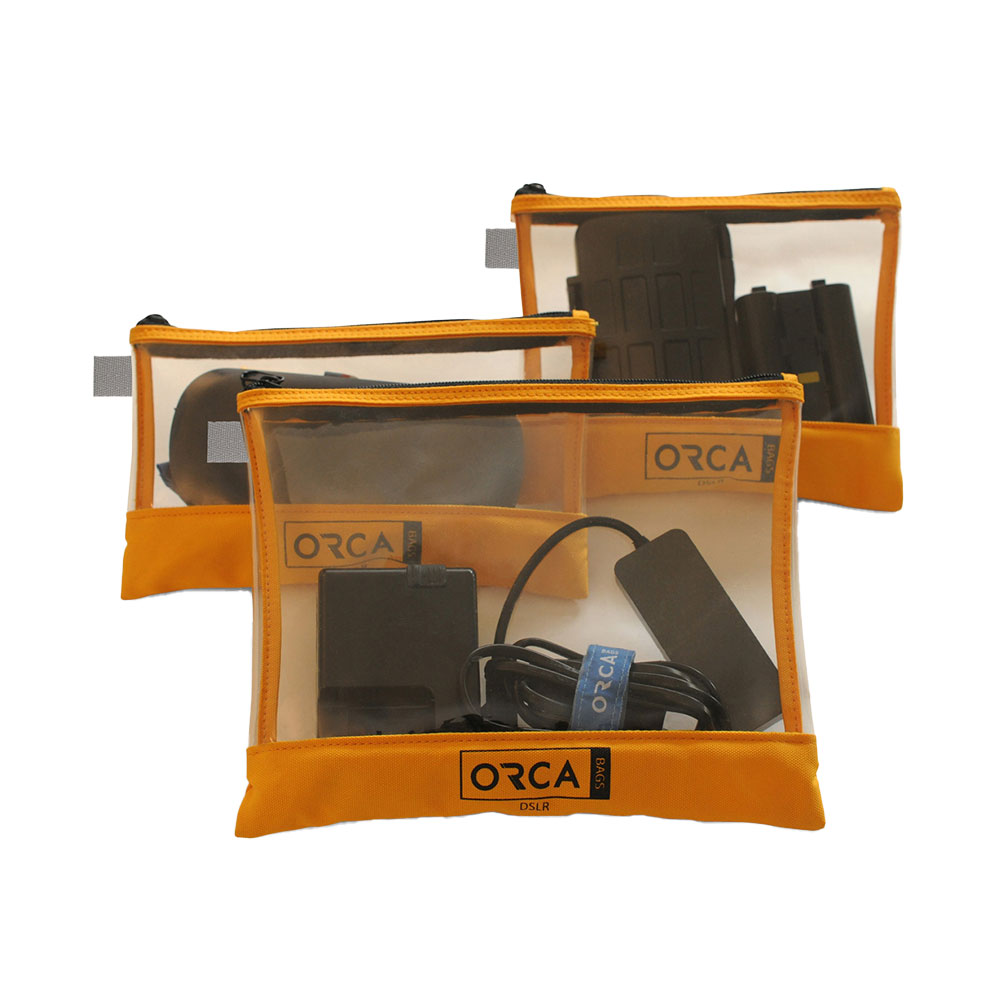 O novo conjunto de bolsas transparentes Orca Bags foi concebido para ajudar a organizar os acessórios do utilizador dentro de uma mala. Este conjunto de bolsas inclui uma bolsa grande, uma bolsa média e uma bolsa pequena. As bolsas podem guardar em segurança: headsets, conectores, pequenos sistemas sem fios, microfones, adaptadores de câmara, baterias, cabos, cartões CF/SxS ou quaisquer cartões de mídia, luzes de câmara, pequenos monitores e muito mais.