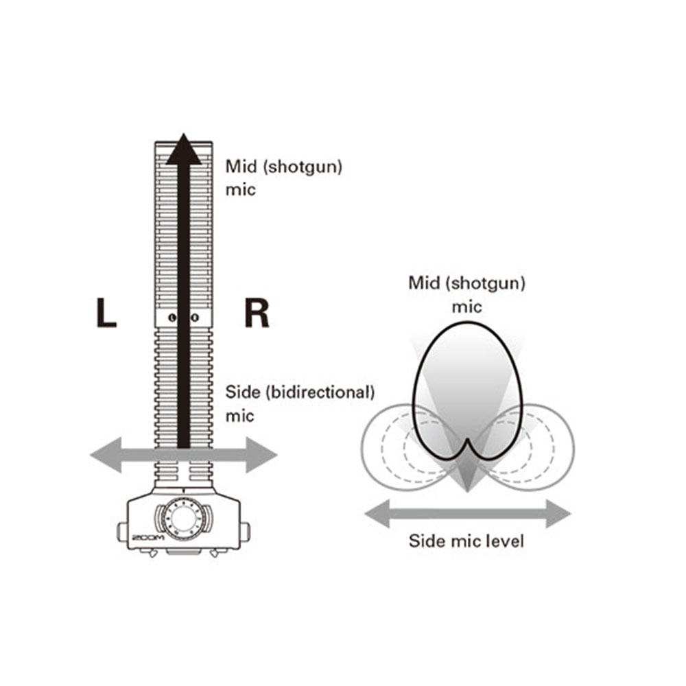 O Zoom SSH-6 é uma cápsula de microfone shotgun estéreo mid-side concebida para os gravadores ZOOM H5 e H6. Esta cápsula combina um microfone shotgun superdirecional, perfeito para capturar áudio central com precisão, com um microfone lateral bidirecional que capta sons provenientes da esquerda e da direita. Esta configuração permite ajustar a largura estéreo de forma intuitiva, simplesmente modificando o nível do microfone lateral, tal como acontece com a cápsula estéreo mid-side MSH-6.